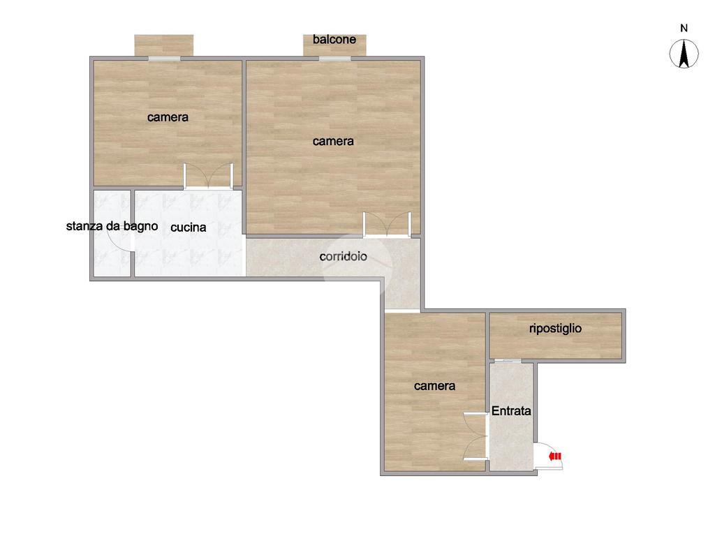 Il cespite è composto da ampio ingresso, due camere da letto matrimoniali, cucina, bagno e ripostiglio. L'immobile gode di un esposizione con balconi alla romana.
