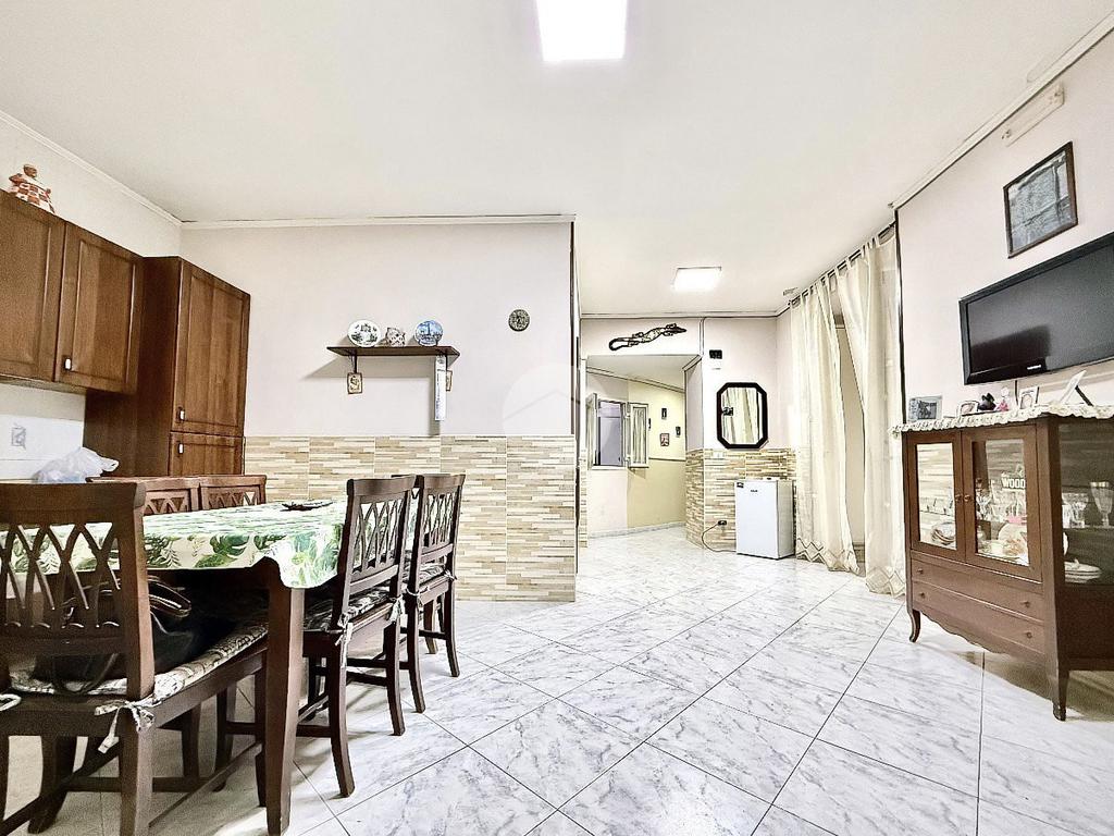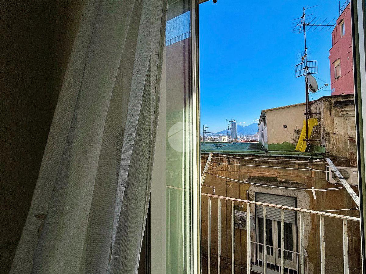 ingresso in cucina abitabile con accesso al TERRAZZO, corridoio che conduce a un ampio salone con comodo ripostiglio, proseguendo troviamo un'ampia camera da letto matrimoniale dalla quale si accede a un vano aggiuntivo attualmente attrezzato con letti a scomparsa, ideale come zona ospiti o studio, e bagno. Completa la soluzione un balconcino con piacevole vista parziale sul Vesuvio.